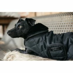 Die Hundemäntel wird passend zu unseren Pferdedecken hergestellt. Die Hundedecke hat eine Füllung von 160 g und ein künstliches Kaninchenfutter für zusätzlichen Komfort. Das künstliche Kaninchenfutter (100% tierfreundlich) bildet winzige Lufteinschlüsse, die die Körperwärme des Hundes einfangen und speichern. Das weiche Futter sorgt auch für Glanz im Fell des Hundes.Das künstlicheSchaffell am Hals bietet Komfort und Wärme. Das Halsstück kann auch nach vorne gefaltet werden, so dass der Hals ebenfalls bedeckt ist. Das diamantene Steppmuster sorgt zusammen mit den mit Kunstleder überzogenen Klettverschlüssen vorne und unter dem Bauch für einen klassischen Look. Der Außenstoff ist aus widerstandsfähigem 1000D High Tenacity Polyester gefertigt. Die Hundemäntel ist bei 30° maschinenwaschbar (kein Trockner).* Künstliches Kaninchenfutter: extra Wärme + Komfort* Sehr widerstandsfähig dank diamantenem Steppmuster* Oberstoff aus widerstandsfähigem 1000D High Tenacity Polyester* Optimales Wärme-/Gewichtsverhältnis-Klettverschlüsse an Brust und Bauch* Künstliches Lammfell am Hals